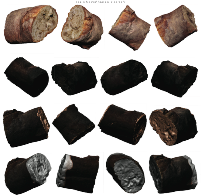 Through the use of 3D scanning, using 1,2,3D Catch, and digital alteration, this installation explores new techniques and possibilities of representation. Everyday objects are first scanned and refined to a hiperrealistic level using Zbrush to then alter into fantastic objects that keep intruiging characteristics of the original objects, stretching the line between real and surreal.